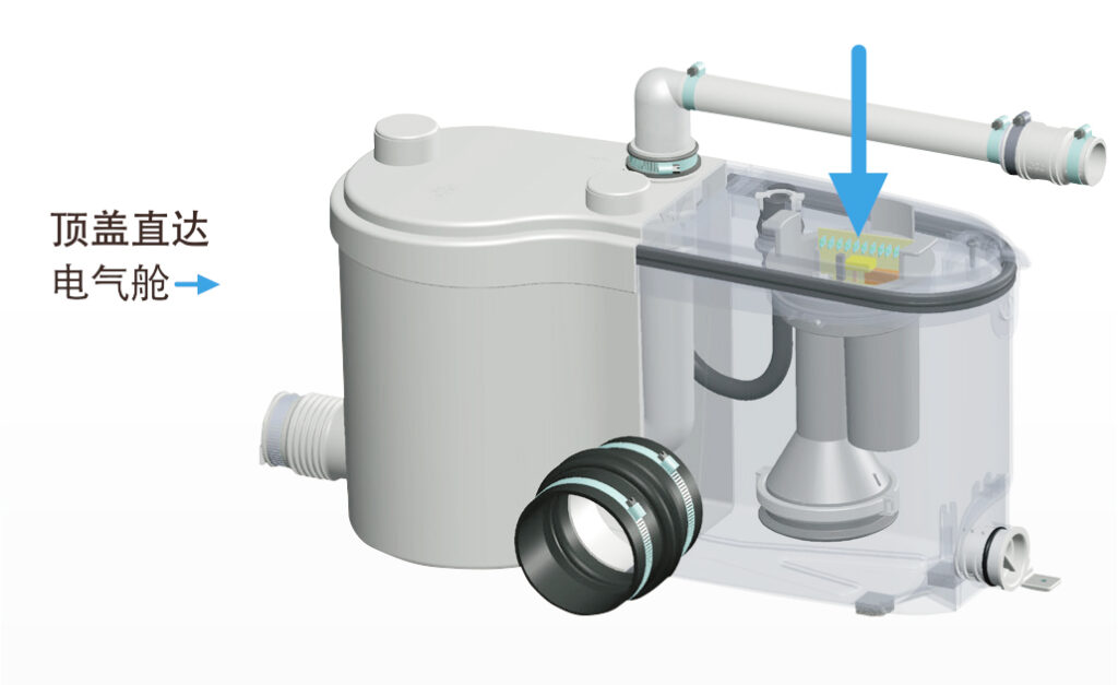 • 擁有強(qiáng)力攪碎裝置,配合標(biāo)準(zhǔn)的底部排水馬桶使用。